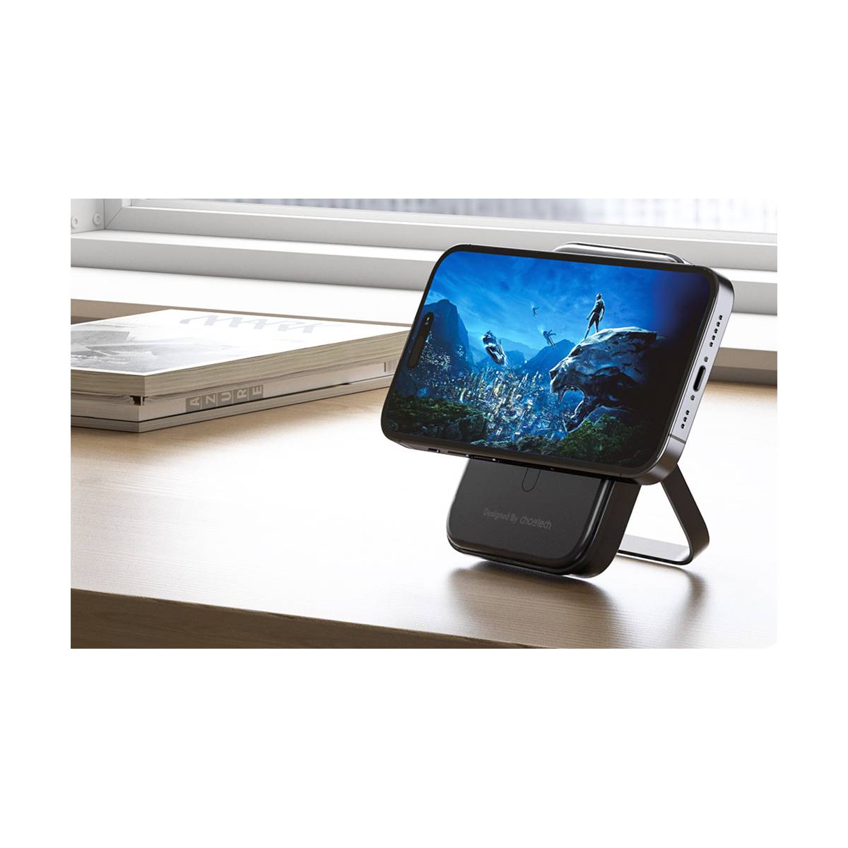 Choetech 5000mAh 20W PD MagSafe powerbank med stand er designet til at være kompakt og let, med dimensioner på cirka 96 x 66 x 15 mm og en vægt på omkring 186 g. Dette gør den let at have i jakkelommen eller den lille skuldertaske. Kabinettet er lavet af brandsikkert ABS+PC, hvilket gør det robust uden at være klodset, og de afrundede kanter gør det behageligt at holde i hånden.