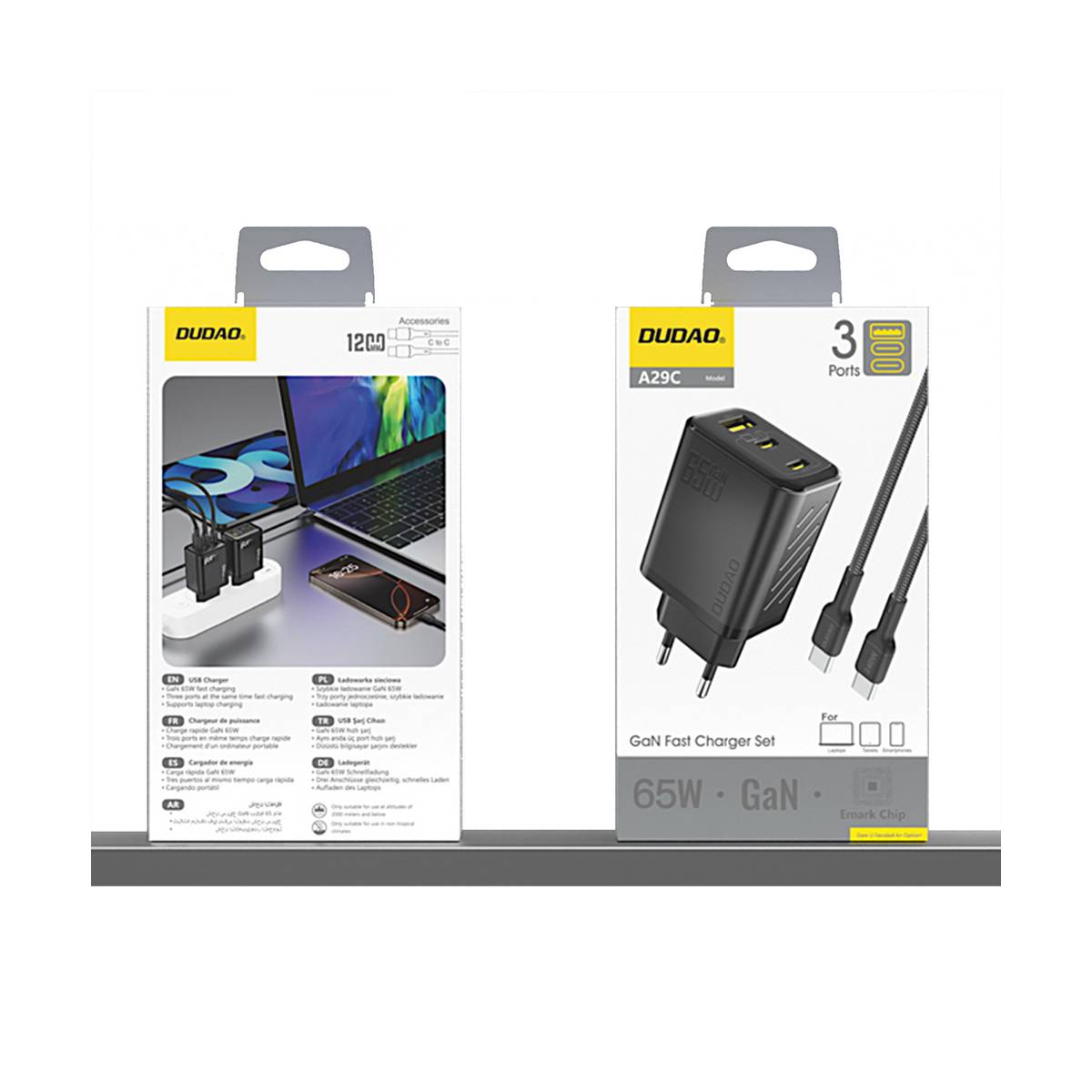 Dudao A29C 65W GaN oplader + USB-C kabel - Sort