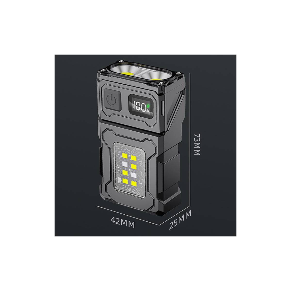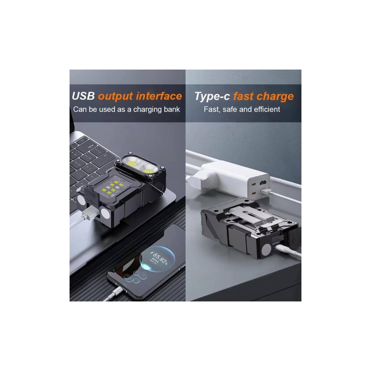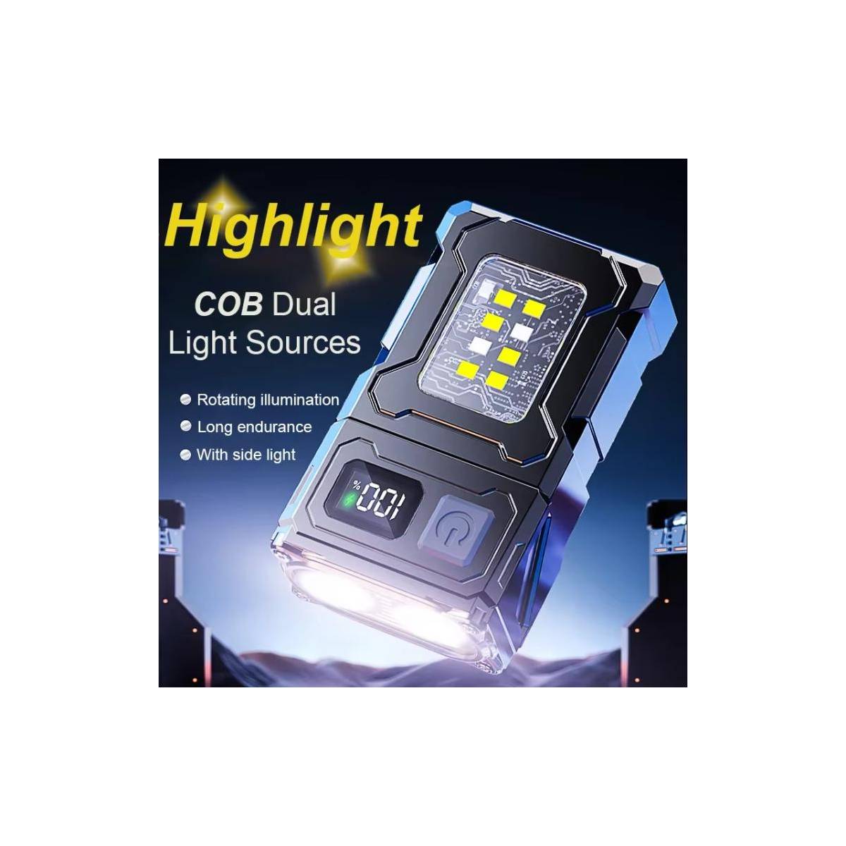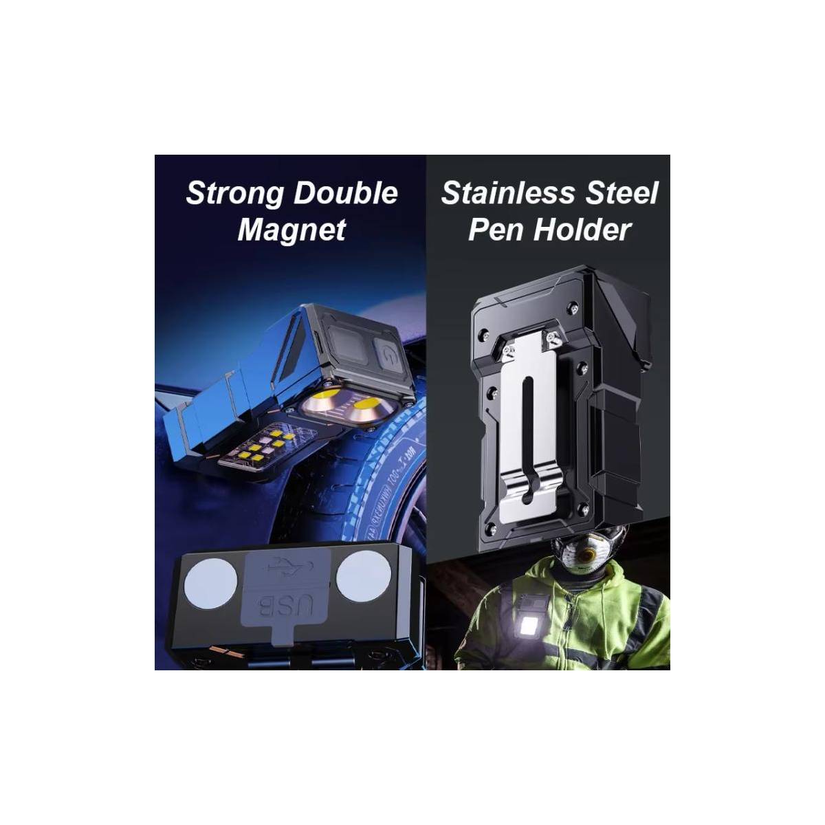 E-Smarter Dual COB LED kraftfuld lygte er en uundværlig ledsager i hverdagen. Denne lygte er udstyret med to COB-lysflader, der sikrer et jævnt og behageligt lysbillede, der dækker et større område end en traditionel punktlygte. Denne lygte er ideel til både nærarbejde og til at oplyse et helt område, når du har brug for ekstra lys.