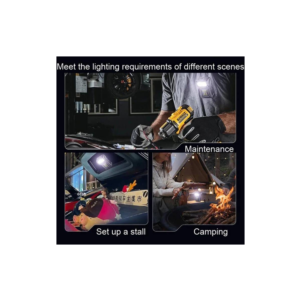 E-Smarter Dual COB LED kraftfuld lygte er også ideel til brug ved strømafbrydelser. Den giver et roligt overblik i stue, gang eller køkken, så du sikkert kan bevæge dig rundt. Til gør-det-selv-projekter lyser den hele arbejdsfladen op, når du skal måle op, samle møbler eller skifte en liste.