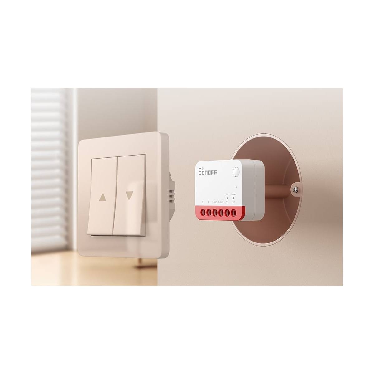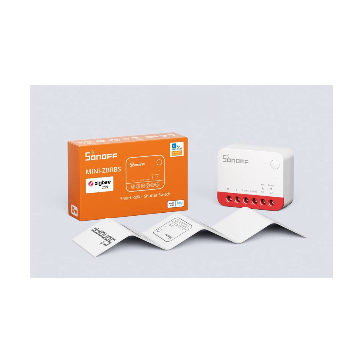 Sonoff MINI-ZBRBS er en intelligent ZigBee mini-switch, der er designet til at give dig fuld kontrol over dine gardiner, persienner og skodder. Med denne enhed kan du nemt opgradere dine almindelige AC-motorer til moderne styring, uden at skulle ændre din nuværende opsætning.